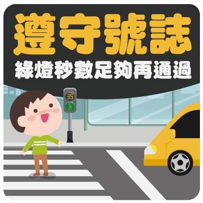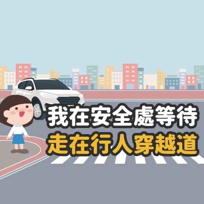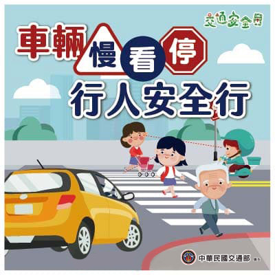 1.9月「交通安全月」,車輛慢看停,行人安全行。專心過馬路